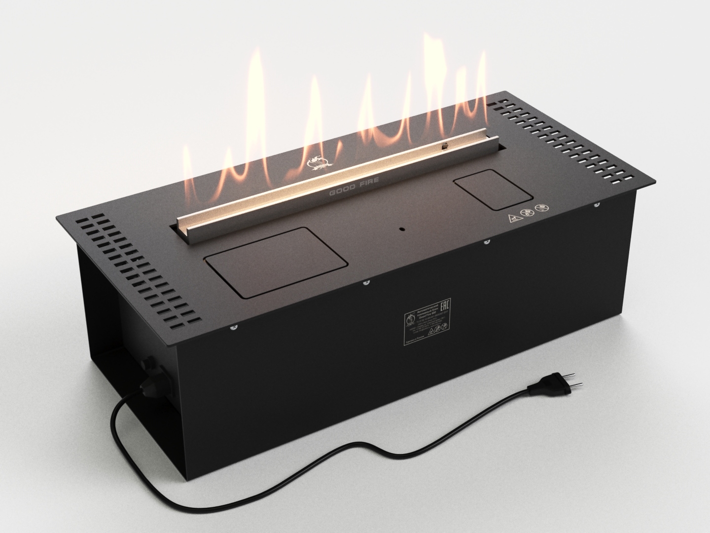 Защитные функции автоматических биокаминов Good Fire: 1. Защита от несанкционированного запуска - необходимо ввести код, чтобы получить доступ к управлению биокамином. 2. Блокировка люка заправочной горловины во время горения биокамина. 3. Двухуровневая защита от перегрева системы. 4. Невозможность запуска в случае превышения максимального уровня топлива. 5. Двухуровневая защита от пролива топлива: датчик пролива топлива и газоанализатор (наличие внутри корпуса биокамина паров топлива). 6. Электрический сетевой предохранитель. 7. При погасшем пламени (сквозняк или порыв ветра) система автоматически переходит в режим охлаждения и выключается. 8. Система выключается при достижении минимального уровня топлива. 9. Если в течении 3 минут после перехода в режим "Розжиг", пламя не зажигается, то система переходит в режим охлаждения и выключается.