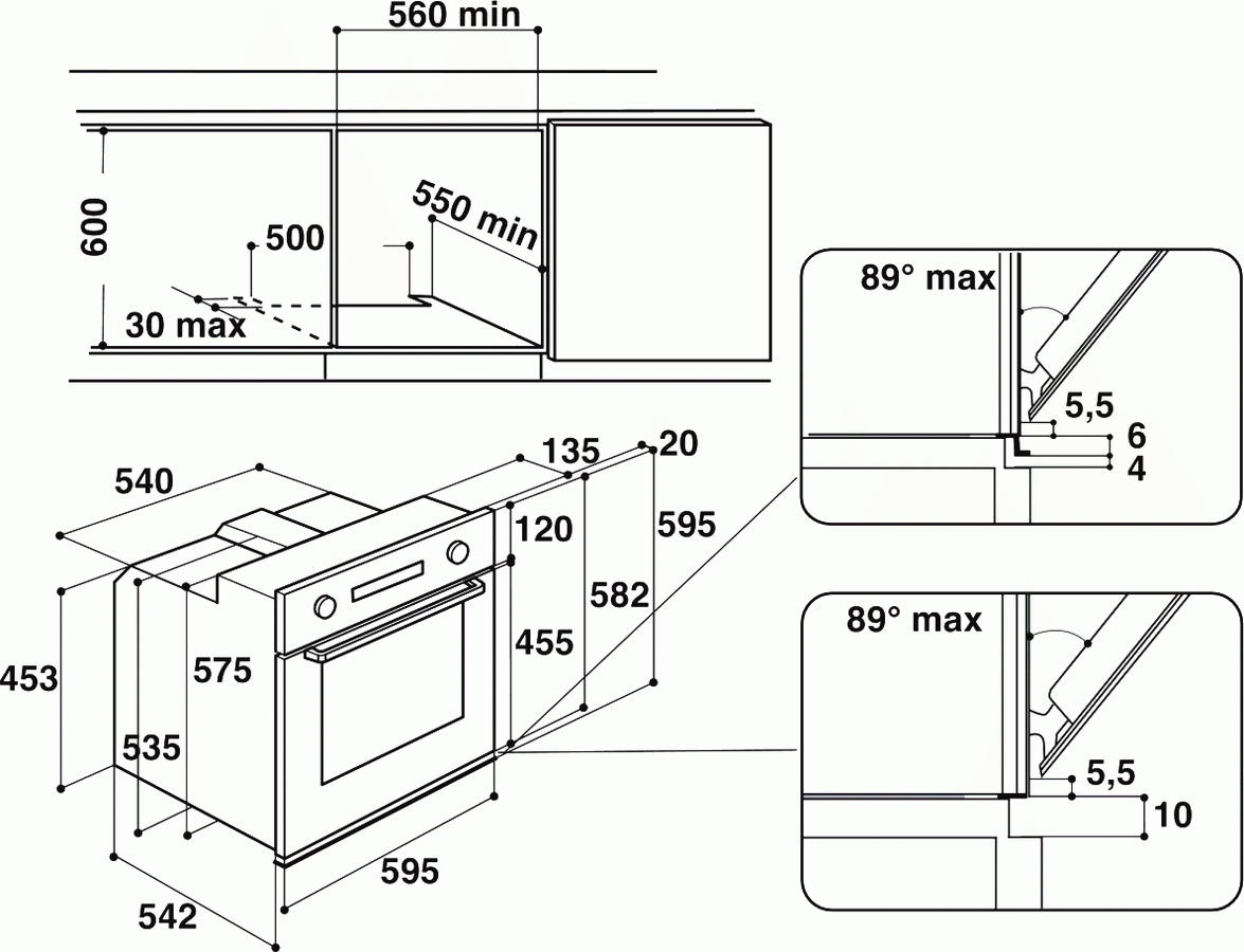 Размеры ниши для встраивания, ВхШхГ см: 60х56х55