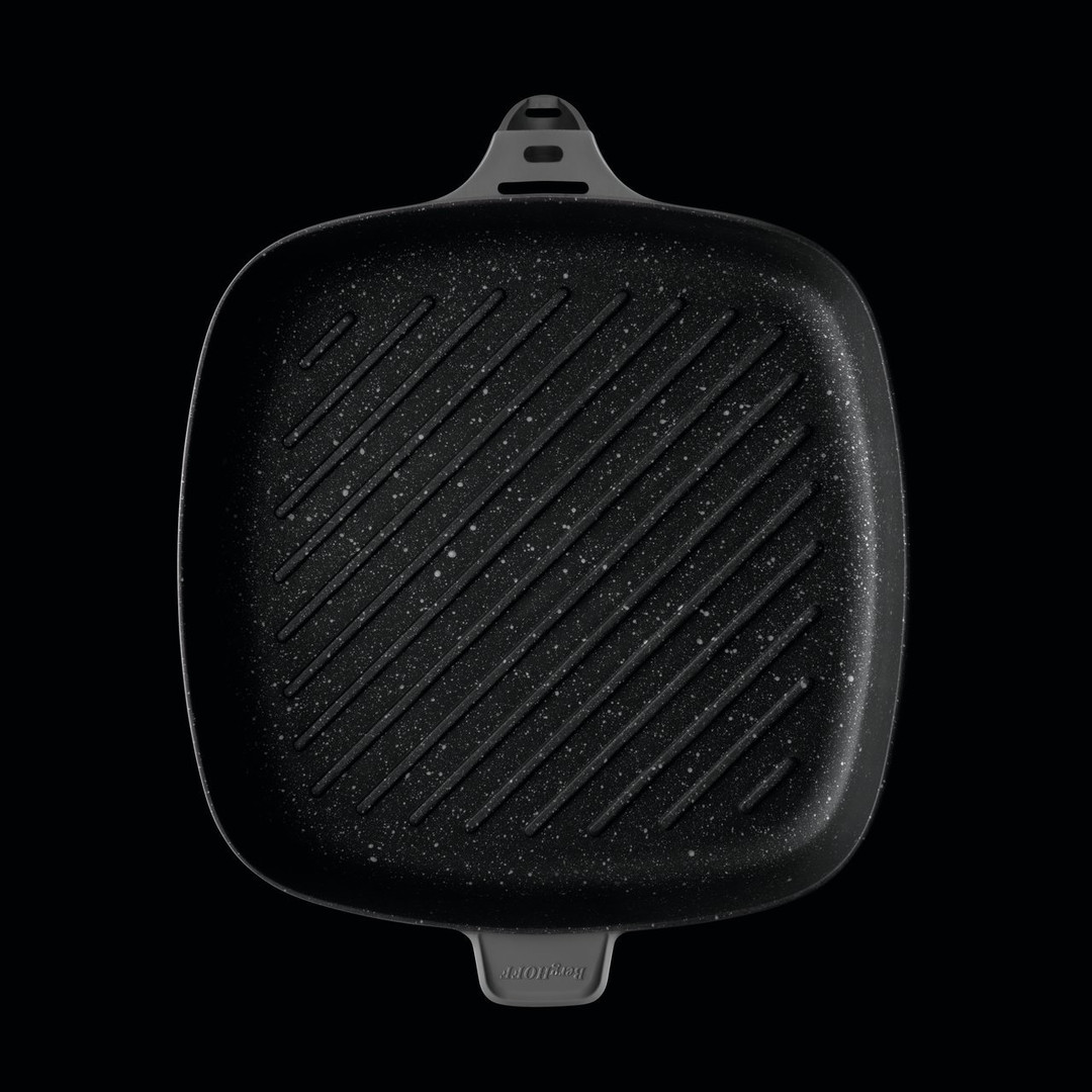 Благодаря рифлёному дну посуда идеальна для стэйков, рыбы и овощей гриль.