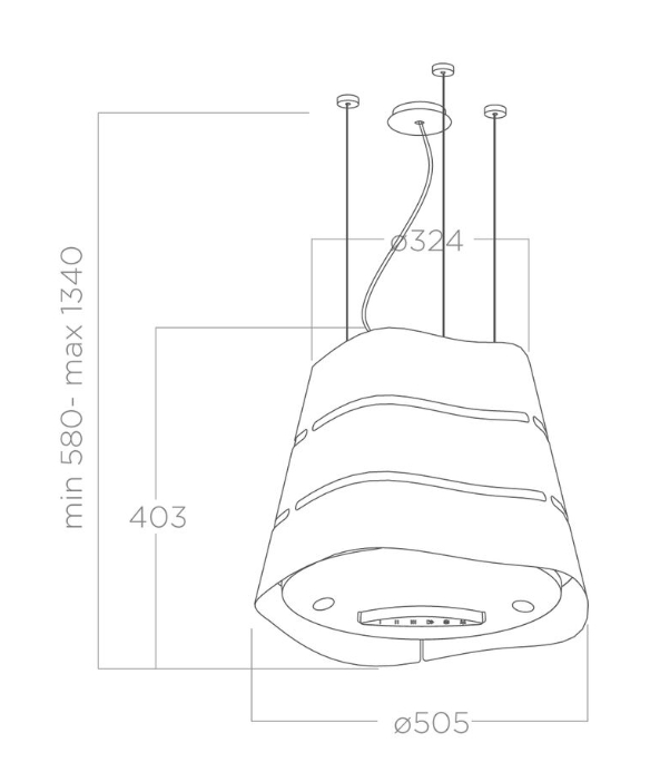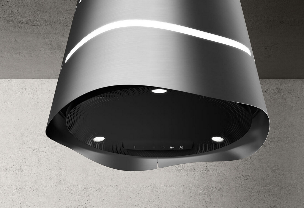 Подвесная вытяжка придаст любой кухне оригинальность и впечатляющую индивидуальность. Изделие обладает превосходной силой аспирации, интенсивной яркостью и режимом отложенного выключения, для полного устранения дыма и неприятных запахов даже после окончания приготовления пищи! Фильтры для удаления запахов обеспечивают максимальную эффективность эксплуатации и служат до 3 лет, снижая негативное воздействие на окружающую среду. Световой индикатор предупреждает о необходимости их очистки, регенерации или замены.