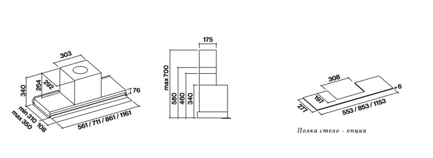 - Сенсорное управление на откидном козырьке,который отсекает пар от фасада кухонного шкафа.