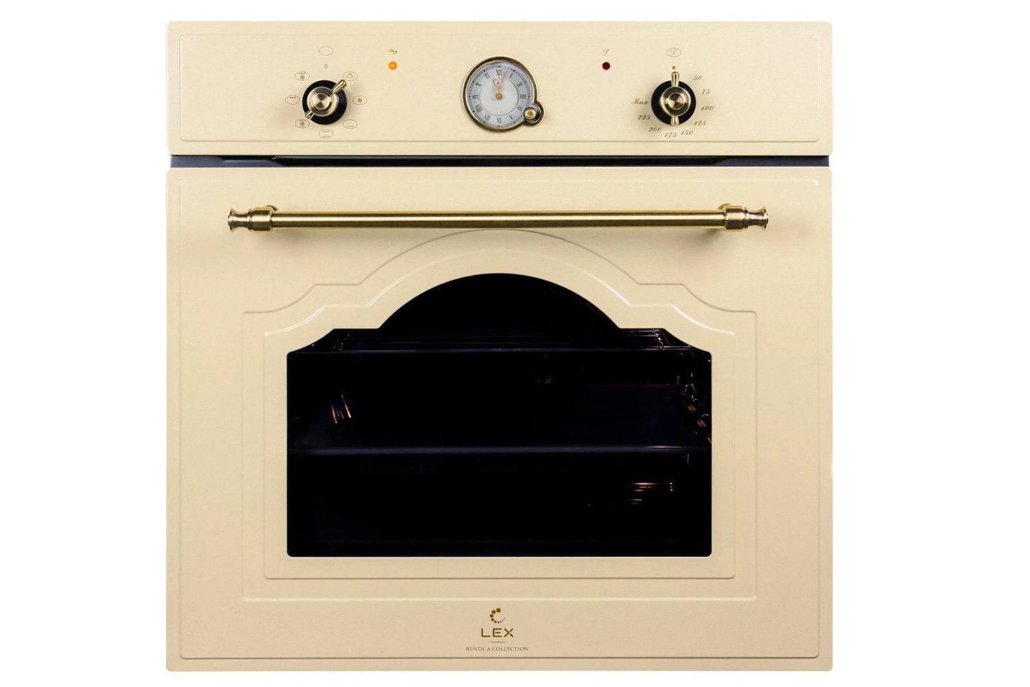 Встраиваемый электрический духовой шкаф LEX EDM 078 C IV цвета айвори с механическим управлением объединяет красоту ретро эстетики и современный функционал. Аналоговый таймер, стильные ручки под старину и двойное стекло ретро формы дополняют образ.