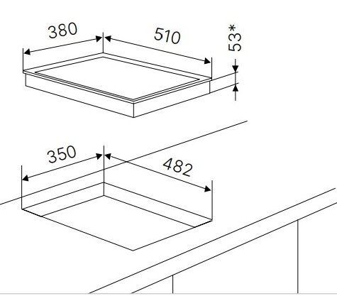 - Габариты ВхШхГ, мм: 53х380х510
