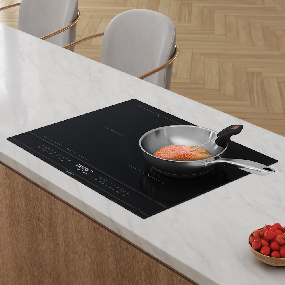 Это модульное варочное пространство является самой большой варочной зоной, имеющейся на рынке. Широкая, овальная, прямоугольная... она может вмещать посуду всех форм и размеров, от сковороды диаметром 23 см до кастрюль овальных форм размером 40 см. С horiZone все комбинации варочных поверхностей становятся возможными и теперь каждый может найти подходящую индукционную поверхность в соответствии со своими предпочтениями.