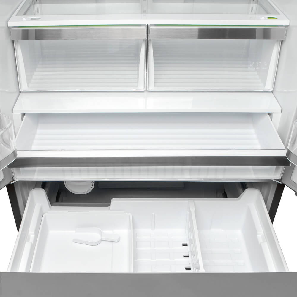 Ящик Fresh Choice по всей ширине: Это позволяет создать идеальные условия для гастрономических продуктов, овощей, фруктов и напитков.