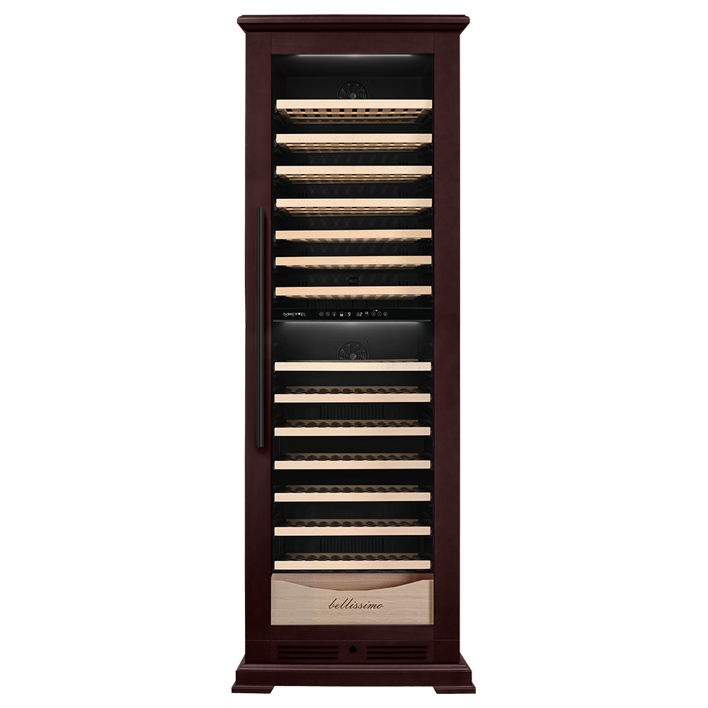 Винный шкаф предназначен для профессионального и длительного хранения различных сортов вин (до 174 бутылок типа Бордо). Он так же оснащен дверью с защитой от ультрафиолетовых лучей и поддерживает влажность в диапазоне 60-80%, как в настоящем винном погребе. Стальной корпус обшит натуральным буком, который выдерживает большие нагрузки и обладает красивой текстурой.