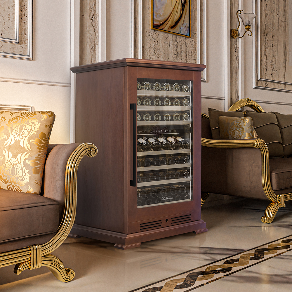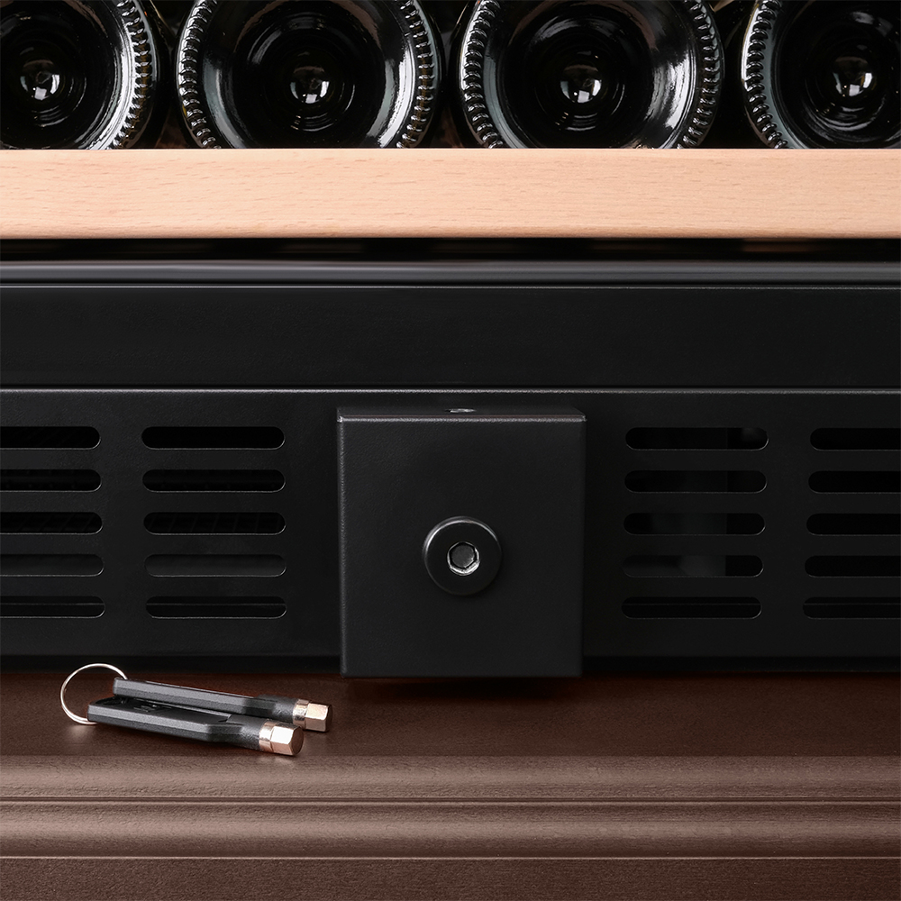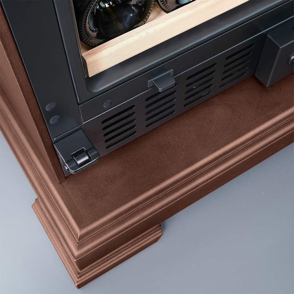 В винном шкафу установлен угольный фильтр, который будет очищать поступающий воздух, ведь посторонние запахи губительно влияют на вкусовые качества вина.