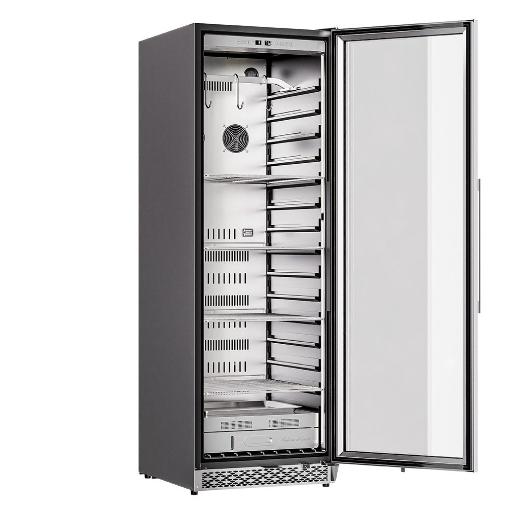 Благодаря широкому температурному диапазону от +1 до +25°C, можно точно настроить параметры для каждого вида мяса. Корпус из стали и стеклянная дверь обеспечивают не только практичность, но и презентабельный внешний вид, который впишется в любой интерьер.